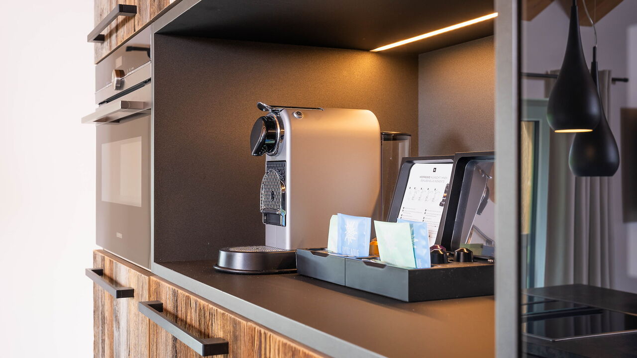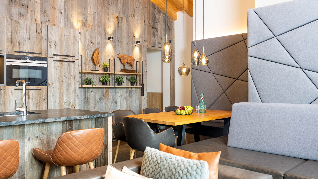 Das edle Penthouse mit 3 Schlafzimmern und Bergblick befindet sich in der dritten Etage. Es besteht aus drei Schlafzimmern mit Doppelbetten, sowie zwei Badezimmern mit Dusche und WC. Die Privat-Sauna ist ein echtes Highlight. Das Wohnzimmer ist ausgestattet mit einem großen Esstisch und einer offenen Design-Küche sowie einer Sitzecke. Vom großen Balkon aus genießen Sie einen beeindruckenden Ausblick auf die Berge.